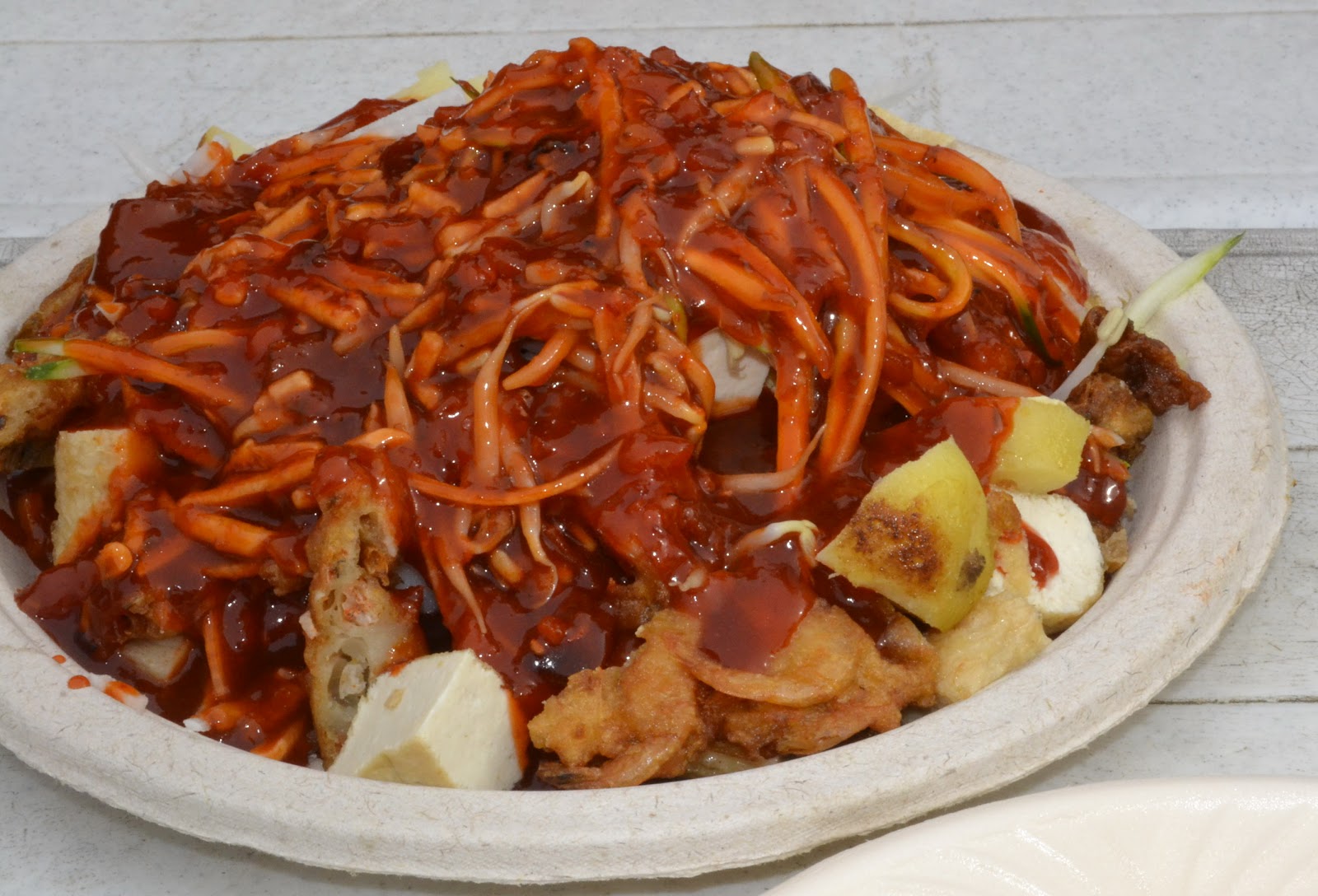 Pasembur is a vibrant Malaysian-Indian salad featuring shredded cucumber, turnip, bean sprouts, fried tofu, prawn fritters, and boiled eggs. Drenched in a thick, spicy-sweet peanut sauce, it’s a medley of textures and flavors. Popular at Gurney Drive hawker stalls, Pasembur reflects Penang’s multicultural roots. Each bite offers crunch, spice, and a hint of sweetness, making it a beloved street food that’s both hearty and refreshing, especially during festive seasons or hot afternoons.